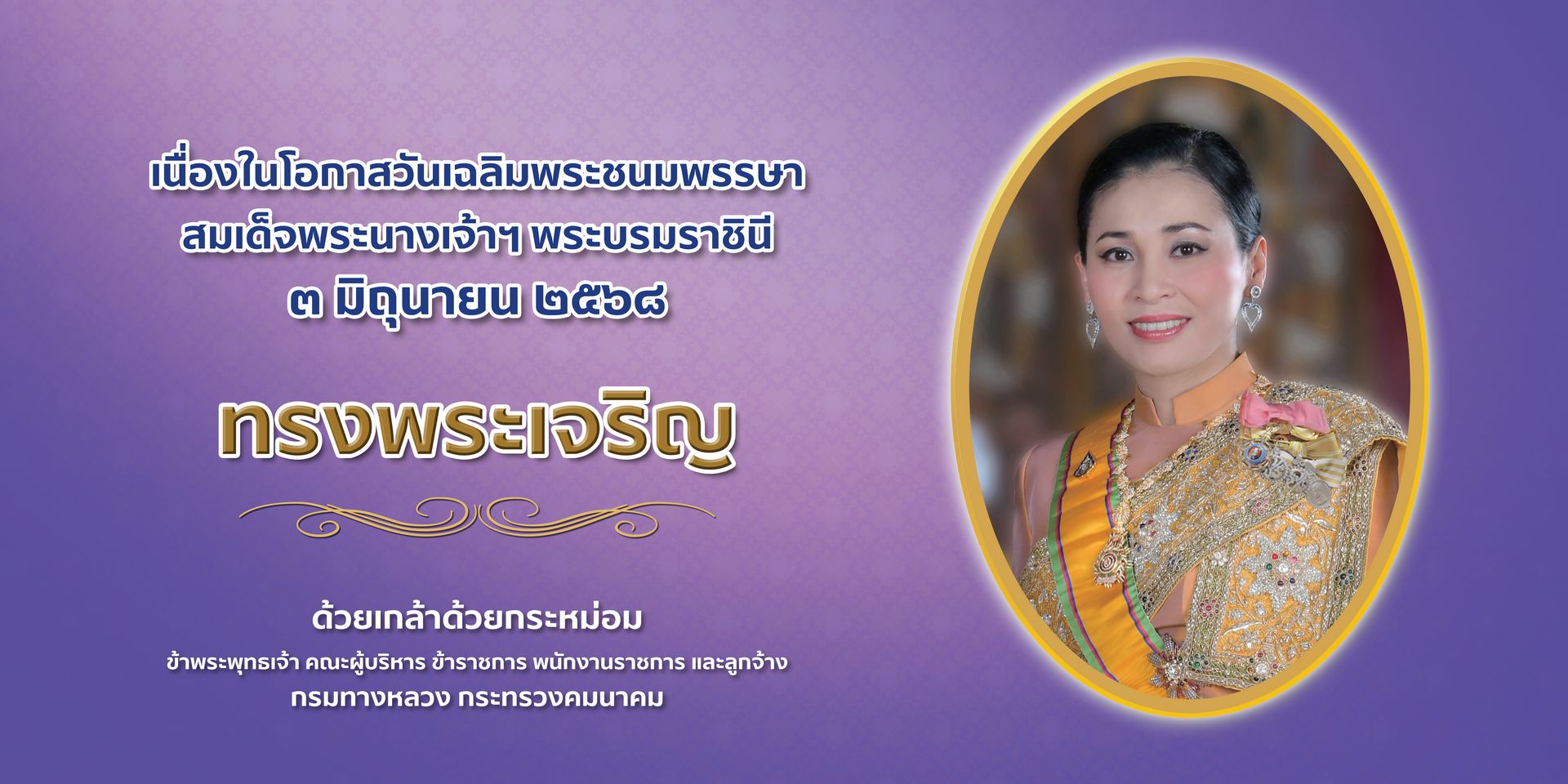 เนื่องในโอกาสวันเฉลิมพระชนมพรรษาสมเด็จพระนางเจ้า ฯ พระบรมราชินี วันที่ ๓ มิถุนายน ๒๕๖๘ ขอเผยแพร่พระราชประวัติ เพื่อร่วมเฉลิมพระเกียรติ