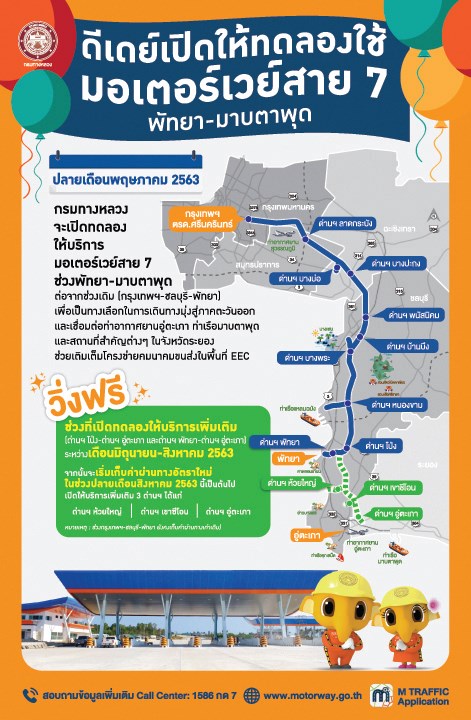 ดีเดย์เปิดให้ทดลองใช้มอเตอร์เวย์สาย 7 (พัทยา-มาบตาพุด)