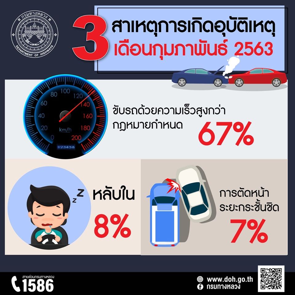 กรมทางหลวง สรุปอุบัติเหตุบนทางหลวงเดือนกุมภาพันธ์ 2563 อุบัติเหตุลดลง 5% พร้อมขอความร่วมมือปฏิบัติตามกฎจราจร