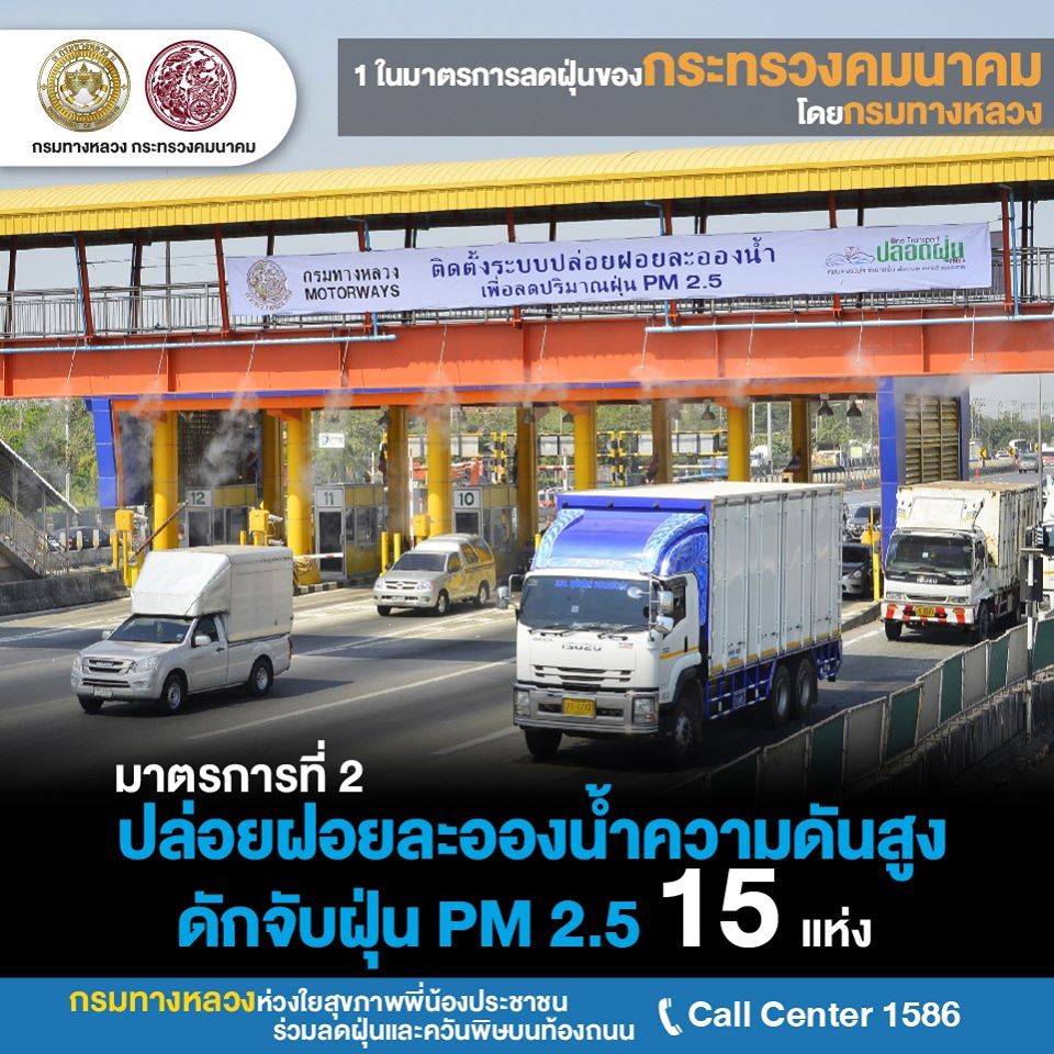 ปฏิบัติการที่ 2 กรมทางหลวงร่วมลดฝุ่น PM 2.5 ปล่อยฝอยละอองน้ำความดันสูงลดฝุ่นบนทางหลวง 15 แห่ง