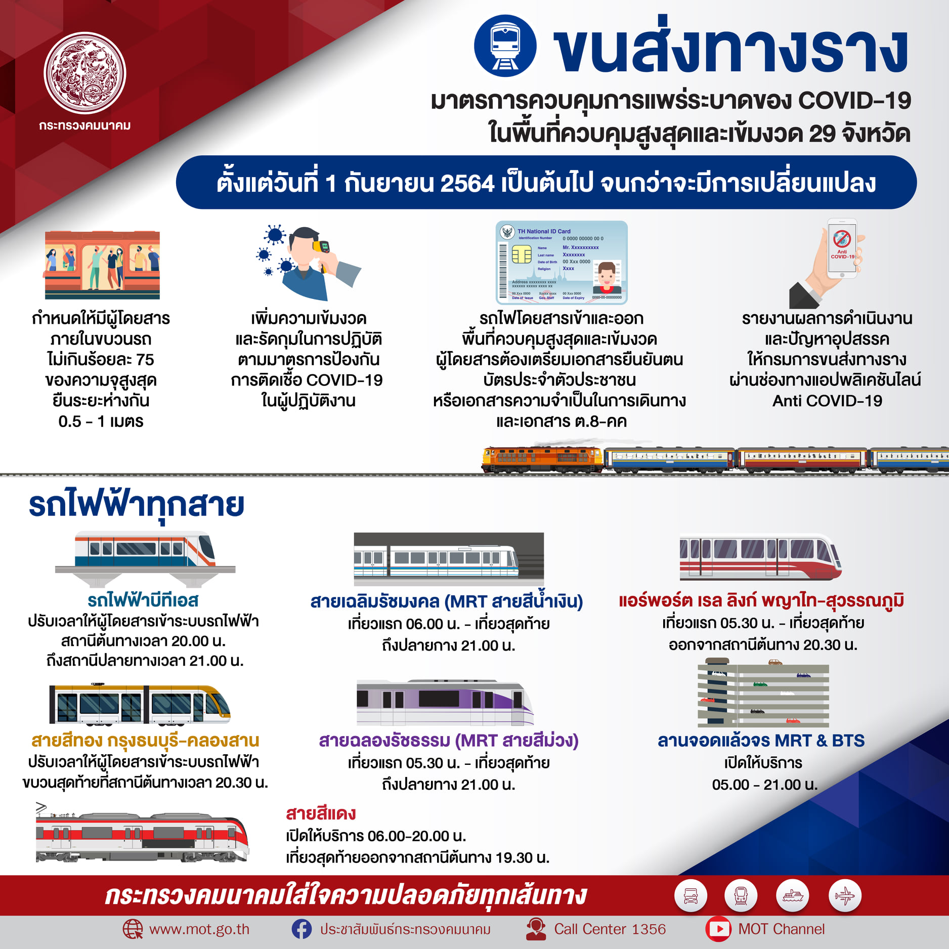 กระทรวงคมนาคม ปรับมาตรการเดินทางตามนโยบายรัฐบาลควบคุมการแพร่ระบาดของโรคติดเชื้อไวรัสโคโรนา 2019 (COVID-19) ในพื้นที่ควบคุมสูงสุดและเข้มงวด 29 จังหวัด