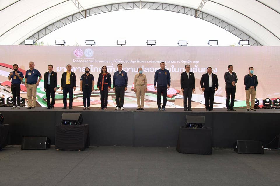 อนุทิน-ศักดิ์สยาม-มนัญญา เปิดโครงการนำยางพารามาใช้เพื่อปรับปรุงเพิ่มความปลอดภัยทางถนน (Kick Off) จังหวัดสตูล พร้อมชมการสาธิตขั้นตอนการผลิต “แผ่นยางธรรมชาติครอบกำแพงคอนกรีต” และ “หลักนำทางยางธรรมชาติ” ด้วยฝีมือคนไทย ตะลึง ราคายางพารา พุ่งทะลุ มากกว่า 60 บาทต่อกิโลกรัมแล้ว