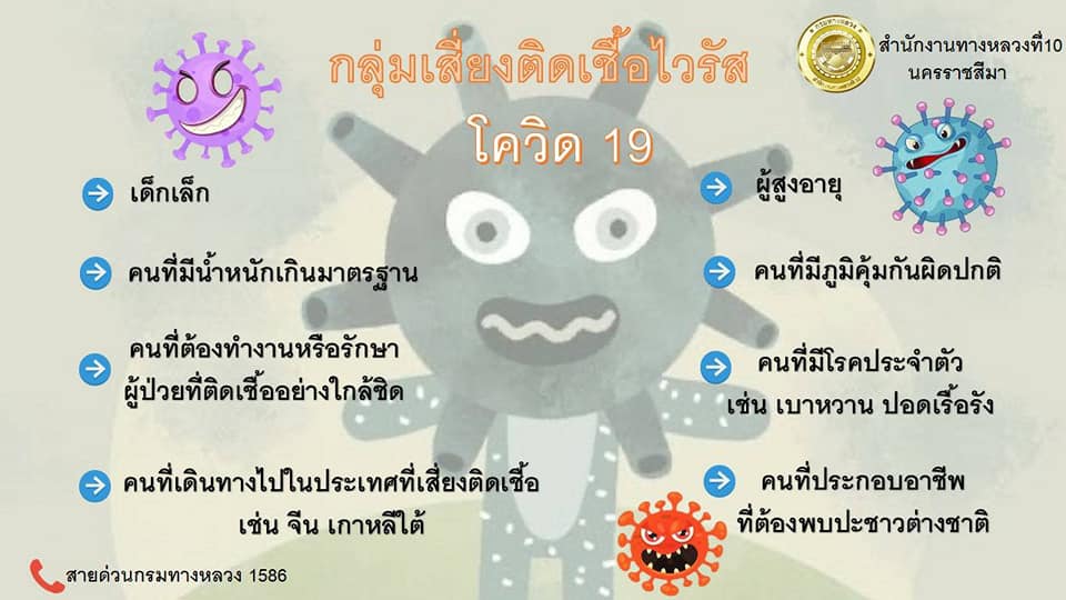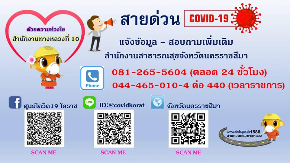 สำนักงานทางหลวงที่ 10 (นครราชสีมา) ขอเป็นกำลังใจให้ทุกท่านร่วมมือร่วมใจปฏิบัติตัวตามมาตรการ และเว้นระยะห่างระหว่างกัน เพื่อให้ห่างไกลจากโควิด-19 และหมั่นสังเกตอาการของตนเองและคนใกล้ชิด หากมีอาการไข้ฯ ขอให้ไปพบแพทย์โดยด่วน เพื่อวินิจฉัยโรค