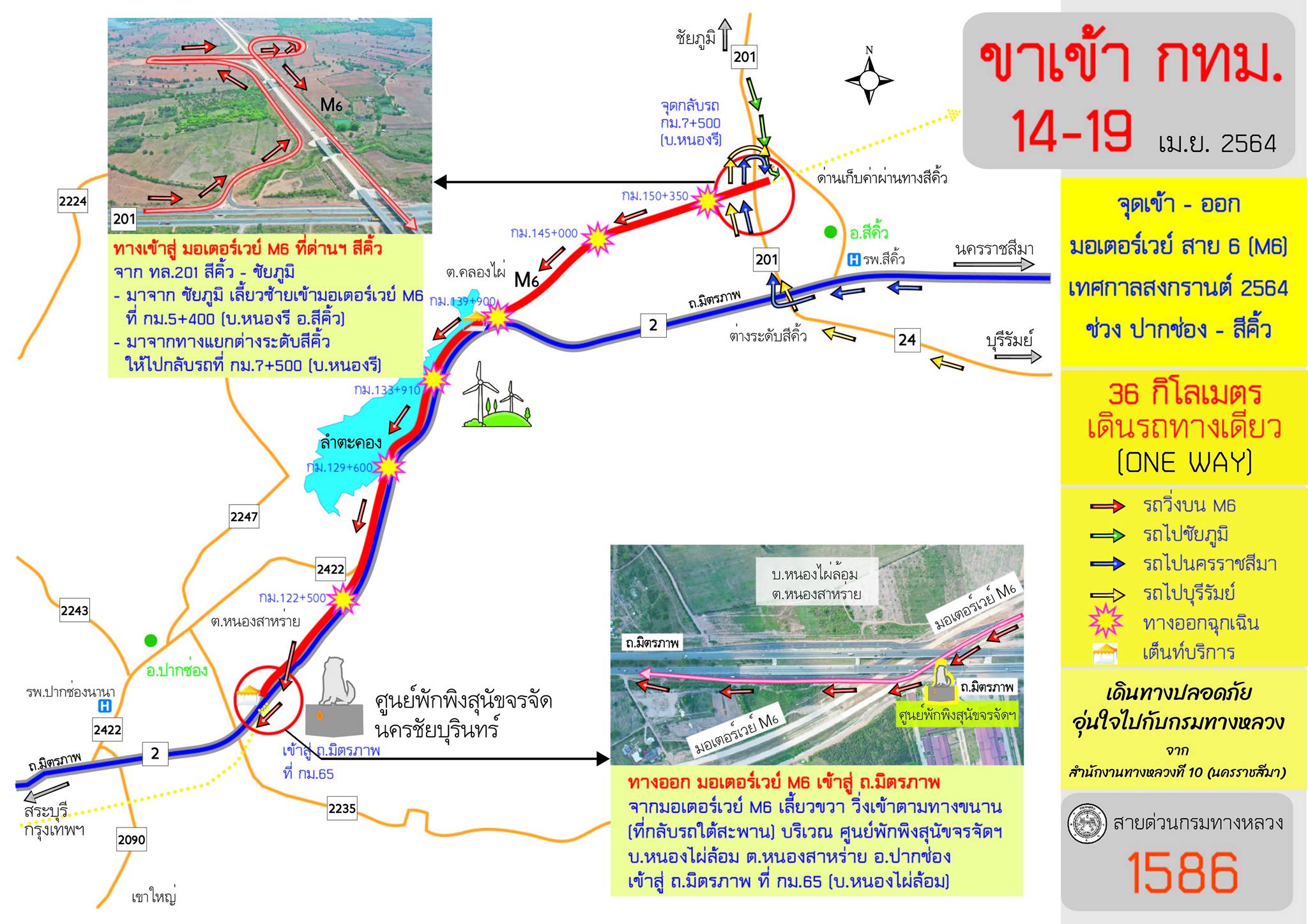 ประชาสัมพันธ์ เปิดให้บริการชั่วคราวทางหลวงพิเศษหมายเลข 6 (มอเตอร์เวย์) ช่วงปากช่อง – สีคิ้ว ตั้งแต่วันที่ 9 - 19 เม.ย. 64