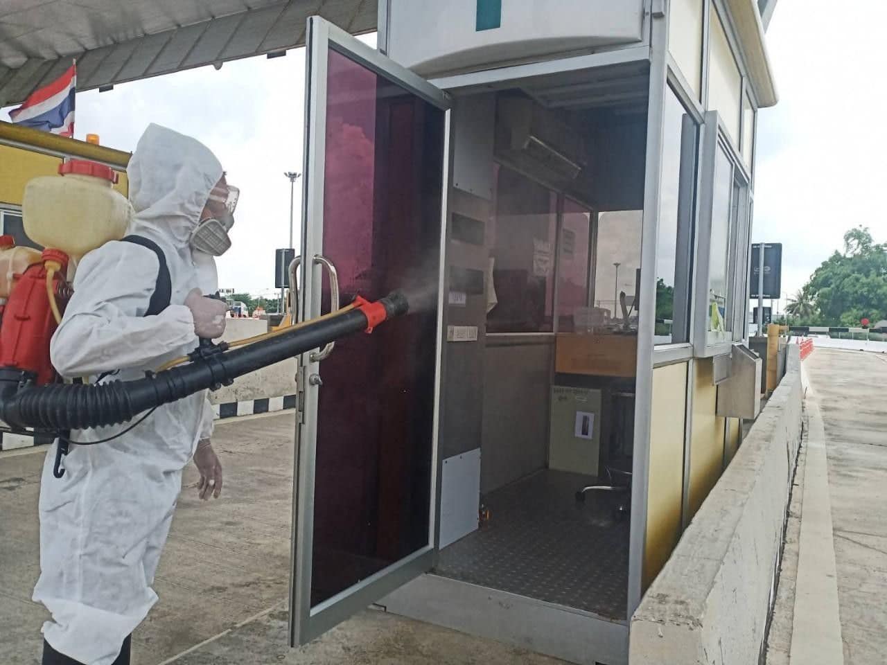 กรมทางหลวงดำเนินตามมาตรการป้องกันการแพร่ระบาดของเชื้อไวรัสโควิด–19 อย่างเข้มงวด โดยจัดทำ QR Code จากแพลตฟอร์ม “ไทยชนะ” เพื่อเก็บข้อมูลบุคคลที่เข้า-ออก ในกรมทางหลวง มีการตรวจวัดอุณหภูมิร่างกายเจ้าหน้าที่ก่อนเข้าปฏิบัติงาน รวมทั้งผู้ที่มาติดต่อราชการ และดำเนินตามมาตรการการเว้นระยะห่างระหว่างบุคคล (Social Distancing) ประมาณ 2 เมตร พร้อมสวมหน้ากากอนามัยในสถานที่สาธารณะ 100 เปอร์เซ็นต์ นอกจากนี้ยังได้มีการทำความสะอาดอาคารสำนักงานด้วยน้ำยาฆ่าเชื้อ เพื่อป้องกันการแพร่ระบาดของเชื้อไวรัสโควิด–19 พร้อมทั้งรายงานผู้เฝ้าระวังเป็นประจำทุกวัน จนกว่าสถานการณ์การแพร่ระบาดของเชื้อไวรัสโควิด-19 จะคลี่คลาย สำหรับมาตรการบริเวณตู้เก็บเงินค่าธรรมเนียมผ่านทาง กรมทางหลวงขอเชิญชวนประชาชนที่ใช้ทางหลวงพิเศษระหว่างเมือง (Motorway) ใช้บัตรผ่านทางด้วยระบบอัติโนมัติ M – Pass โดยกรมทางหลวงร่วมกับธนาคารกรุงไทย มอบสิทธิพิเศษสำหรับประชาชนผู้ใช้ M-PASS เติมเงินบัตร M-PASS จำนวน 500 บาท รับเงินคืนเข้า Tag M-PASS จำนวน 50 บาท จนถึงวันที่ 30 กันยายน 2564 เพื่อลดการเลี่ยงการสัมผัส เป็นการป้องกันการแพร่ระบาดของเชื้อไวรัสโควิด – 19 พร้อมทั้งให้เจ้าหน้าที่สวมหน้ากากอนามัยและสวมถุงมือยางตลอดเวลาที่ปฏิบัติหน้าที่, จัดให้มีเจลแอลกอฮอล์ที่ตู้เก็บเงินทุกตู้, มีการทำความสะอาดบัตรผ่านทางด้วยน้ำยารักษาความสะอาดทุกครั้ง, มีการฉีดพ่นน้ำยาฆ่าเชื้อภายในตู้เก็บเงิน และดำเนินการตามนโยบายเพื่อให้เจ้าหน้าที่ได้รับการฉีดวัคซีน