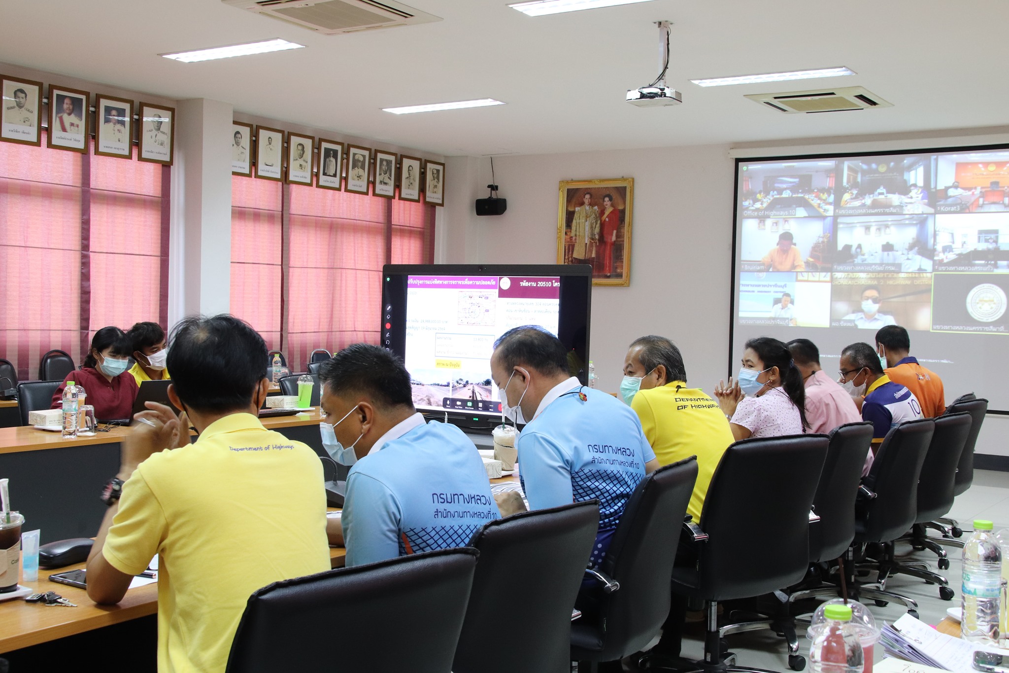 นายจิระพงศ์ เทพพิทักษ์ ผู้อำนวยการสำนักงานทางหลวงที่ 10 (นครราชสีมา) พร้อมด้วยคณะผู้บริหาร สทล.10 และผู้อำนวยการแขวงทางหลวงในสังกัด ร่วมประชุมประจำเดือนพฤษภาคม ของ สทล.10 ผ่านแอพพลิเคชั่น Zoom กับแขวงทางหลวงในสังกัดที่อยู่นอกพื้นที่จังหวัดนครราชสีมา ตามมาตรการการป้องกันการแพร่เชื้อโควิด-19 ณ ห้องประชุมสำนักงานทางหลวงที่ 10 (นครราชสีมา) เพื่อติดตามผลการดำเนินงาน ปัญหาและอุปสรรคต่างๆ ในแต่ละพื้นที่