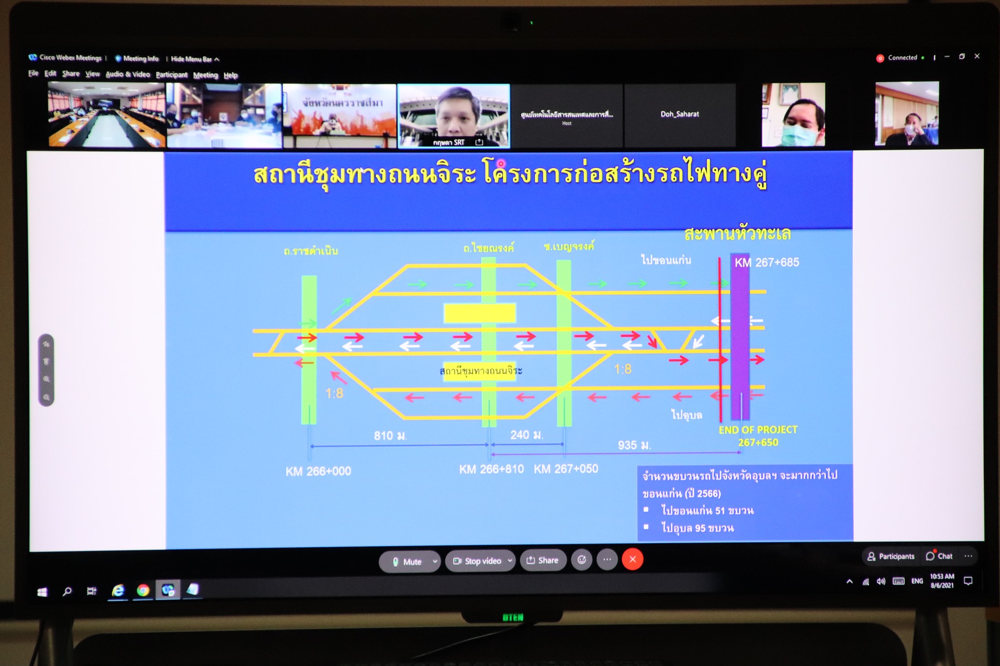 นายจิระพงศ์ เทพพิทักษ์ ผู้อำนวยการสำนักงานทางหลวงที่ 10 (นครราชสีมา) เป็นประธานการประชุมการติดตามความคืบหน้าการก่อสร้างโครงการรถไฟทางคู่ยกระดับในจังหวัดนครราชสีมา พร้อมด้วย คณะผู้บริหาร สทล.10 ผู้อำนวยการแขวงทางหลวงนครราชสีมาที่ 2 ณ ห้องประชุมสำนักงานทางหลวงที่ 10 (นครราชสีมา) ร่วมประชุม ผ่านสื่ออิเล็กทรอนิกส์ (Video conference) กับหอการค้าจังหวัดนครราชสีมา เพื่อชี้แจงรูปแบบ/แผนงานความคืบหน้าการก่อสร้างรถไฟรางคู่ ช่วงมาบกะเบา-ชุมทางถนนจิระ สัญญาที่ 2 ช่วงคลองขนานจิตร - ชุมทางถนนจิระ และแผนงาน/แนวทางการแก้ไขปัญหาความเดือดร้อนของประชาชน กรณีรื้อถอนสะพานข้ามทางรถไฟหัวทะเล