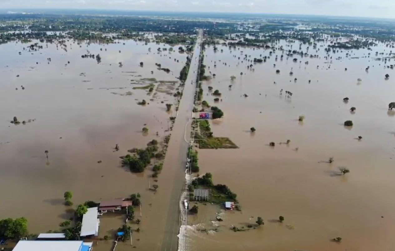 เเละ ทางหลวง 2068 โนนไทย-หนองสรวง น้ำท่วมผิวจราจรประมาณ 60 cm ช่วงบ้านนารายณ์ รถไม่สามารถผ่านได้