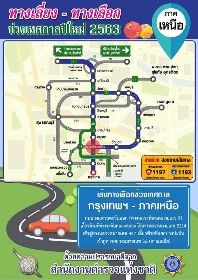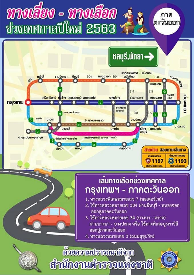 สำนักงานตำรวจแห่งชาติ แนะนำเส้นทางเลี่ยง - ทางเลือก ในช่วงเทศกาลปีใหม่ 2563