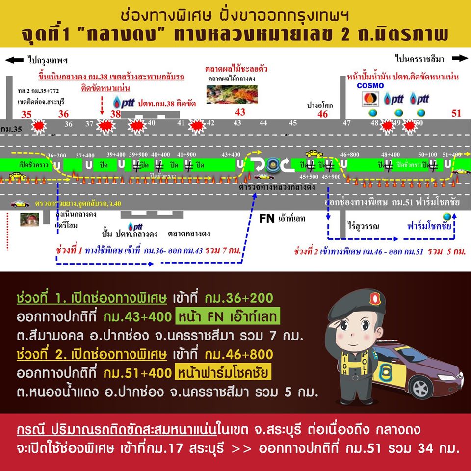 จุดที่ 3 จอหอ ทล.2 ถ.มิตรภาพ กม.160-161 เปิดช่องทางพิเศษ เข้าที่ กม.161 ออกทางปกติที่ กม.163