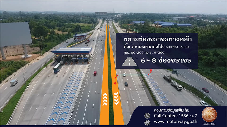 กรมทางหลวง แจ้งเบี่ยงการจราจรโครงการก่อสร้างปรับปรุงเพิ่มช่องจราจร ช่วงทางแยกต่างระดับหนองขาม – ทางแยกต่างระดับโป่ง บนทางหลวงพิเศษหมายเลข 7