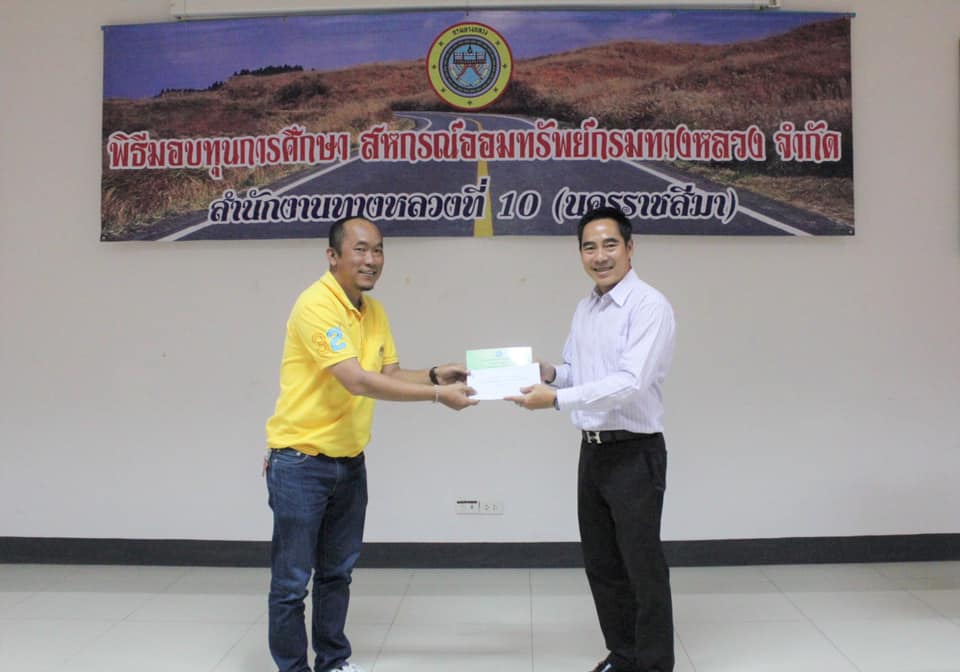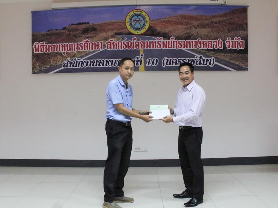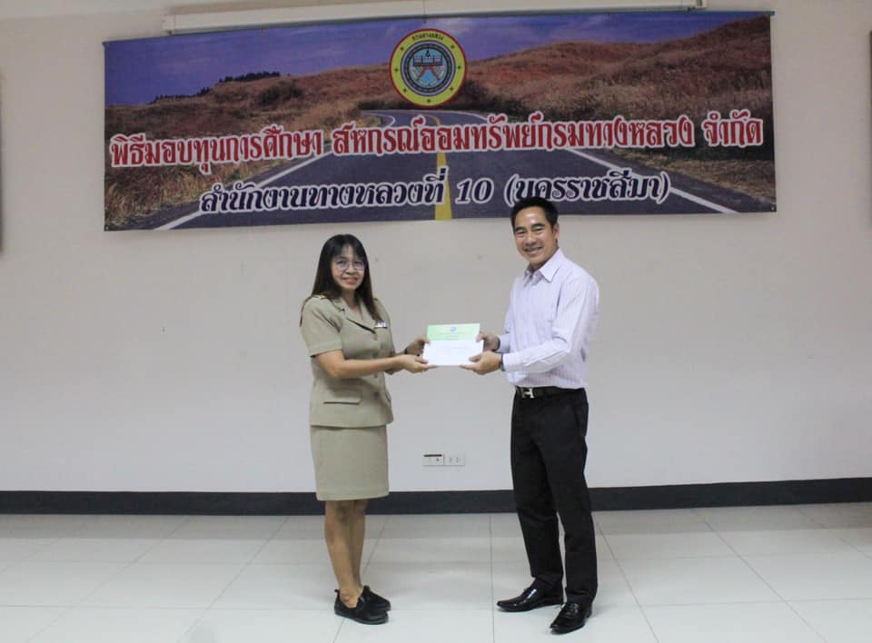 มอบทุนการศึกษาให้กับบุตรสมาชิกของสหกรณ์ออมทรัพย์กรมทางหลวงประจำปี 2563 ประเภททุนเรียนดีและทุนสนับสนุนการศึกษาให้แก่สมาชิกสหกรณ์ รวม 16 ทุน ณ ห้องประชุม สำนักงานทางหลวงที่ 10 (นครราชสีมา)