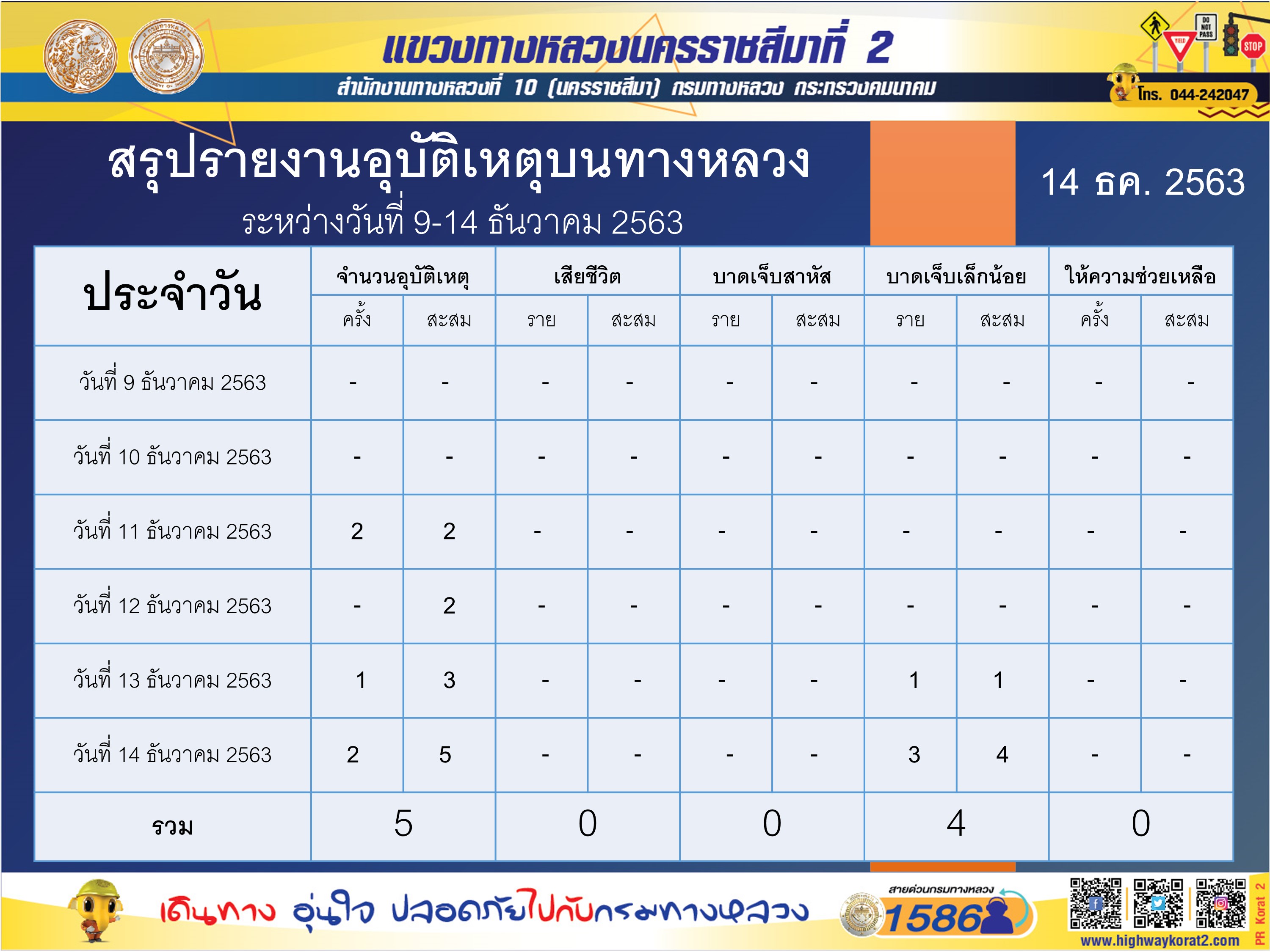 สรุปรายงานอุบัติเหตุบนทางหลวง 14 ธค 2563