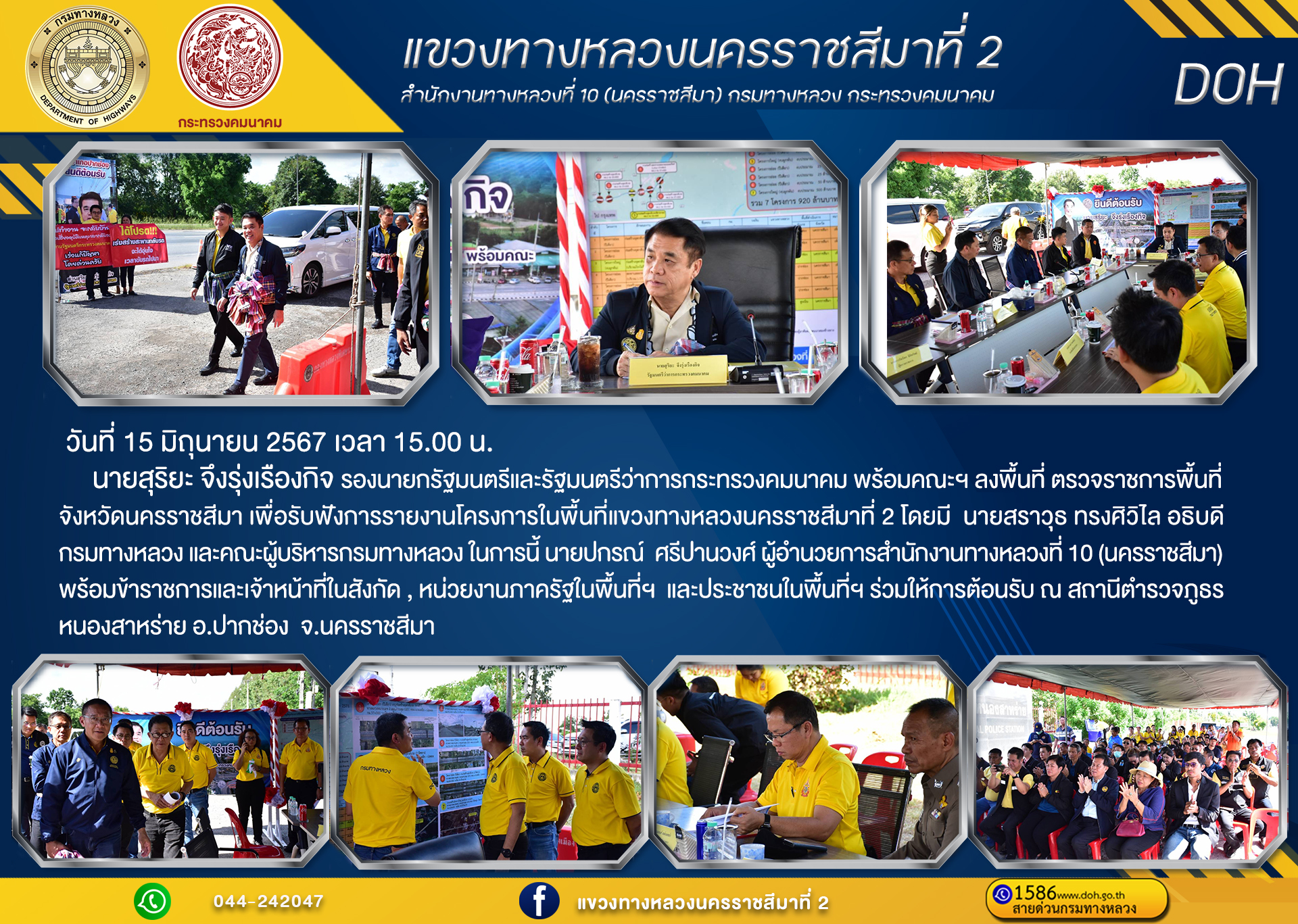 รองนายกรัฐมนตรีและรัฐมนตรีว่าการกระทรวงคมนาคม พร้อมคณะฯ ลงพื้นที่ ตรวจราชการพื้นที่จังหวัดนครราชสีมา