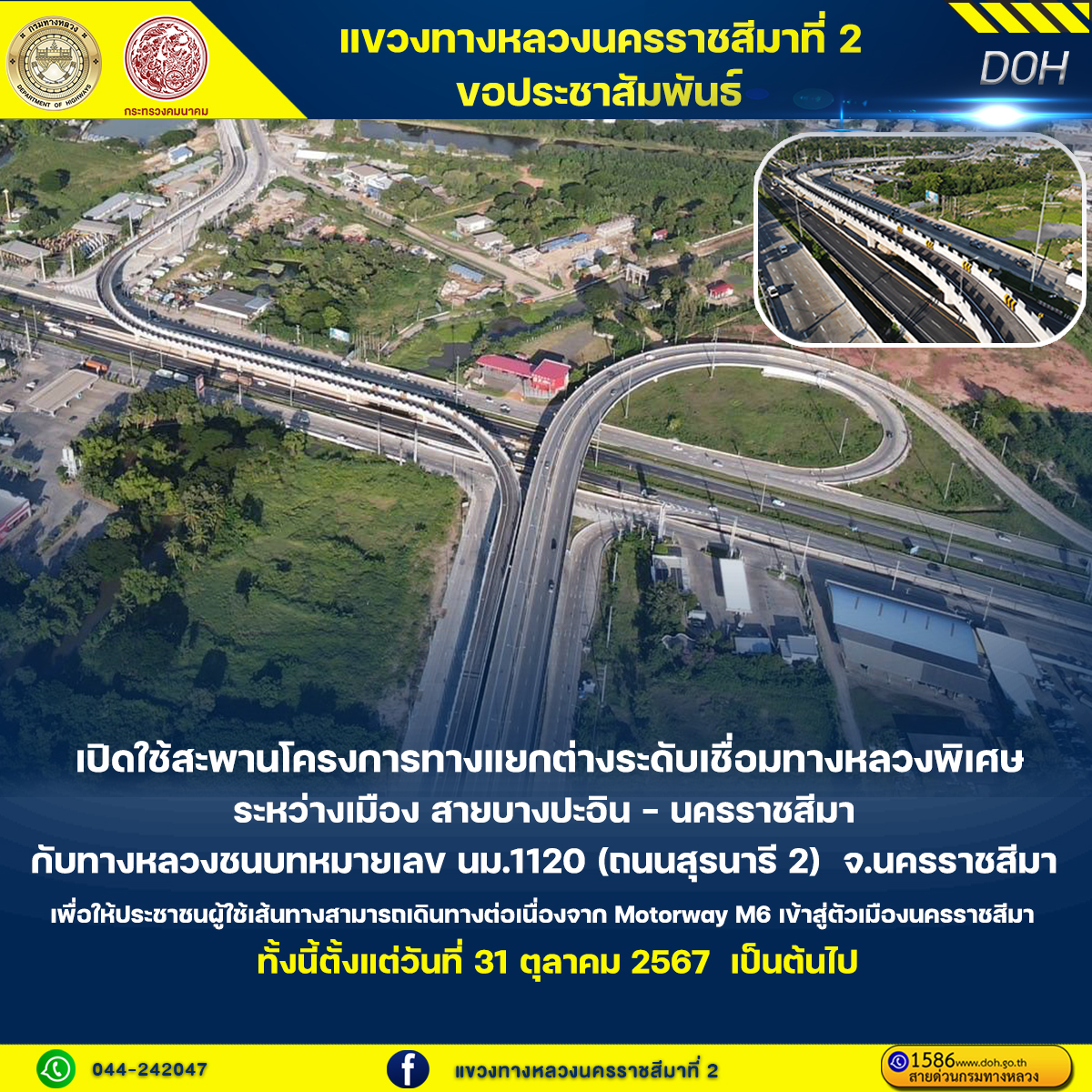 ประชาสัมพันธ์ เปิดใช้สะพานโครงการทางแยกต่างระดับเชื่อมทางหลวงพิเศษระหว่างเมือง สายบางปะอิน – นครราชสีมา กับ ทางหลวงชนบทหมายเลข นม.1120