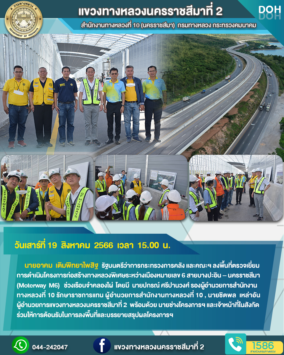 รัฐมนตรีว่าการกระทรวงการคลัง และคณะฯ ลงพื้นที่ตรวจเยี่ยมการดำเนินโครงการก่อสร้างทางหลวงพิเศษระหว่างเมืองหมายเลข 6 สายบางปะอิน – นครราชสีมา