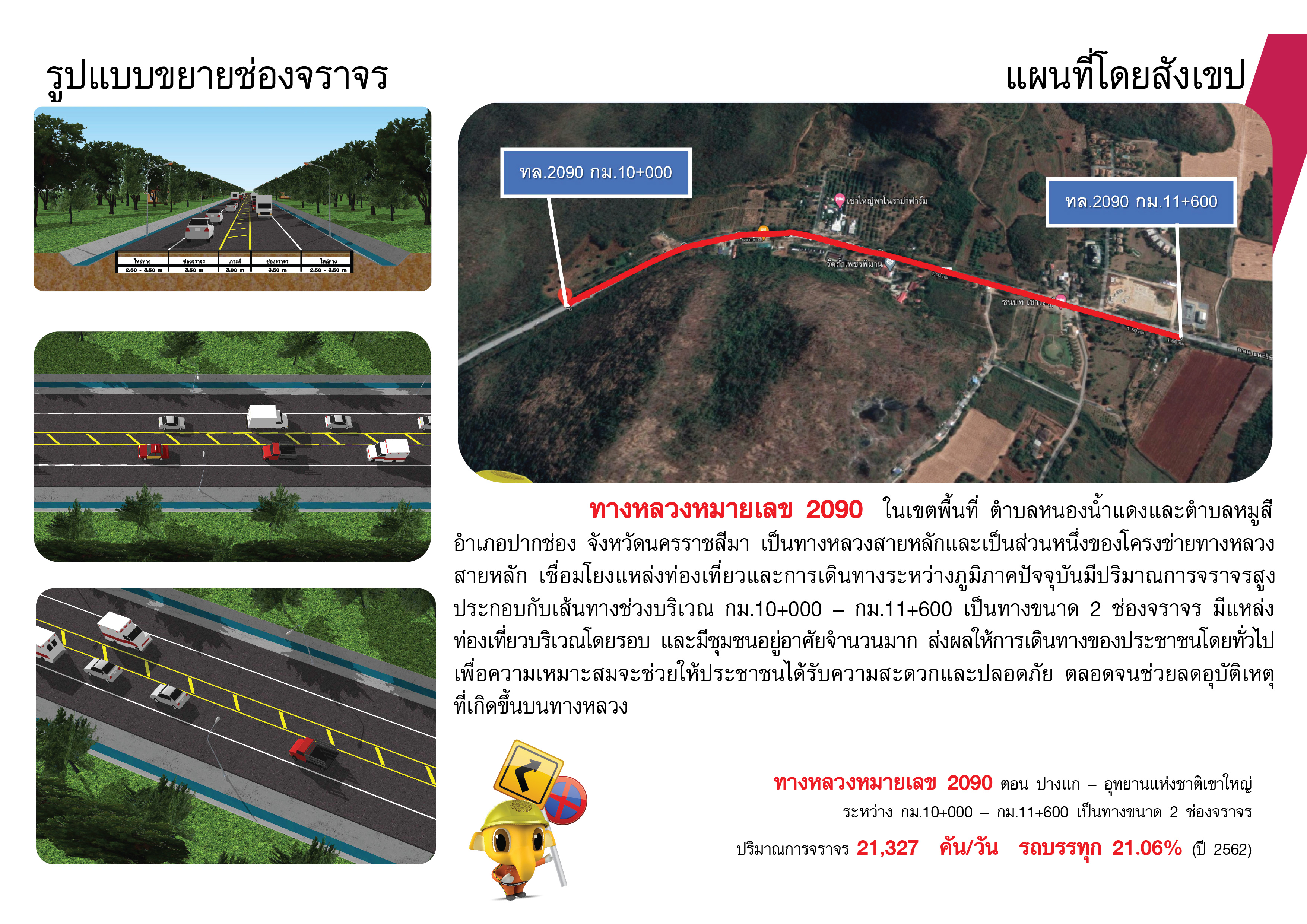 ประชาสัมพันธ์โครงการพัฒนาด้านสังคม กิจกรรมหลัก เพิ่มประสิทธิภาพการคมนาคม ขนส่งและ การบริหารจัดการ ปรับปรุงทางหลวงเพื่อการท่องเที่ยว บนทางหลวงหมายเลข 2090