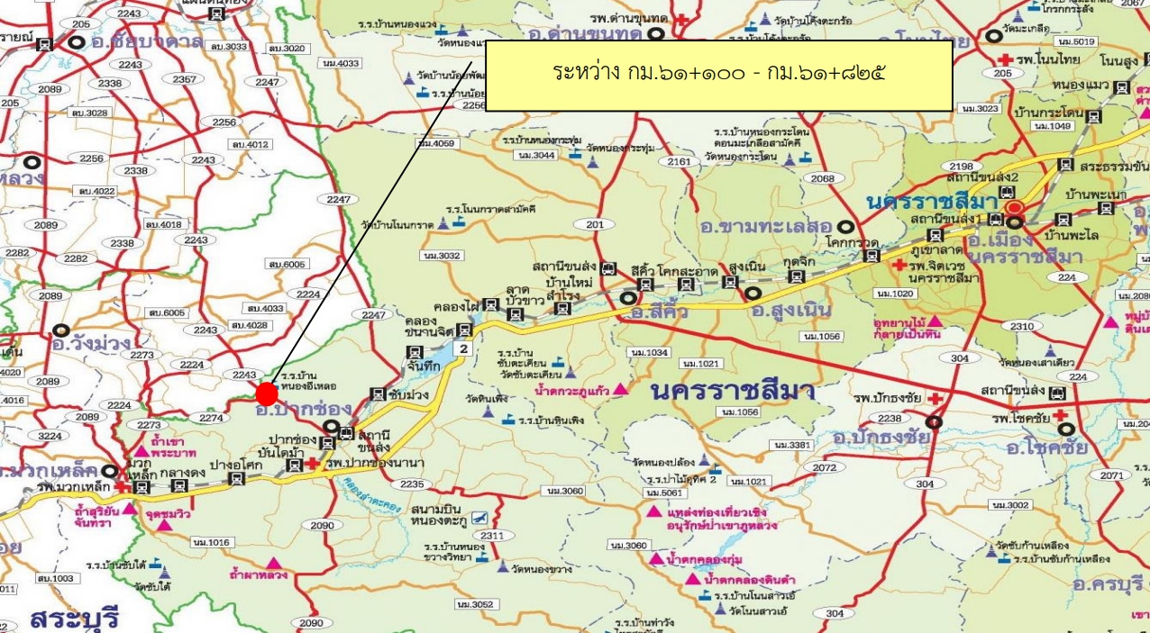 แขวงทางหลวงนครราชสีมาที่ 2 สำนักงานทางหลวงที่ 10 (นครราชสีมา) กรมทางหลวง มีงาน จ้างก่อสร้างงานกิจกรรมยกระดับมาตรฐานและเพิ่มประสิทธิภาพทางหลวง ทางหลวงหมายเลข 2243 ตอนควบคุม 0200 ตอน อีเหลอ - ปากช่อง ระหว่าง กม.61+100 - กม.61+825 ปริมาณงาน 1 แห่ง เริ่มดำเนินการระหว่าง วันที่ 13 มกราคม 2564 ถึงวันที่ 11 กรกฎาคม 2564 โดย บริษัท สามัคคีที่ดินและเคหะ จำกัด