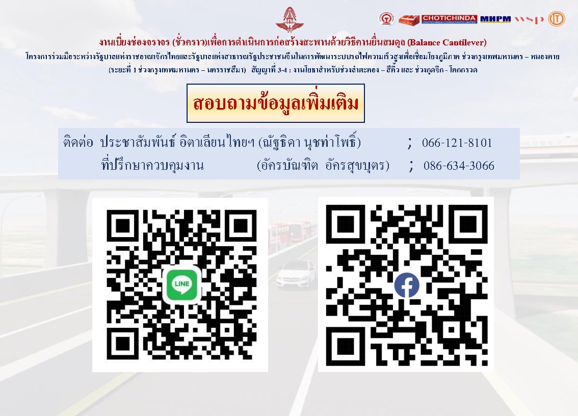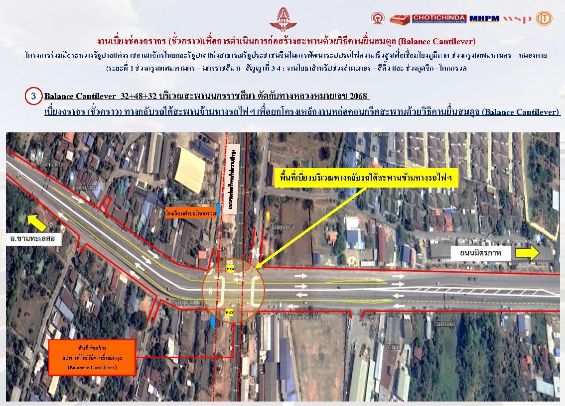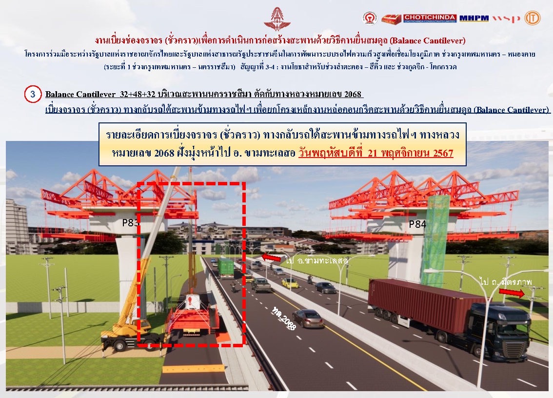 ประชาสัมพันธ์กำหนดการงานเบี่ยงช่องจราจร (ชั่วคราว) เพื่อดำเนินการยกโครงเหล็กงานหล่อคอนกรีตสะพานด้วยวิธีคานยื่นสมดุล (Balance Cantilever)