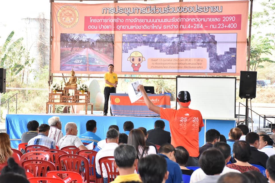 แขวงทางหลวงนครราชสีมาที่ 2 จัดการประชุมการมีส่วนร่วมรับฟังความคิดเห็นของประชาชน โครงการก่อสร้างทางจักรยานบนถนนธนะรัชต์